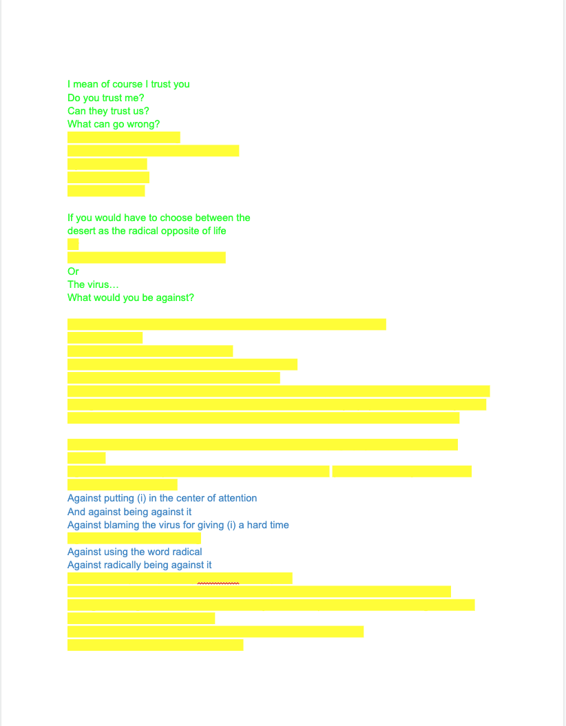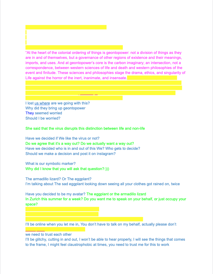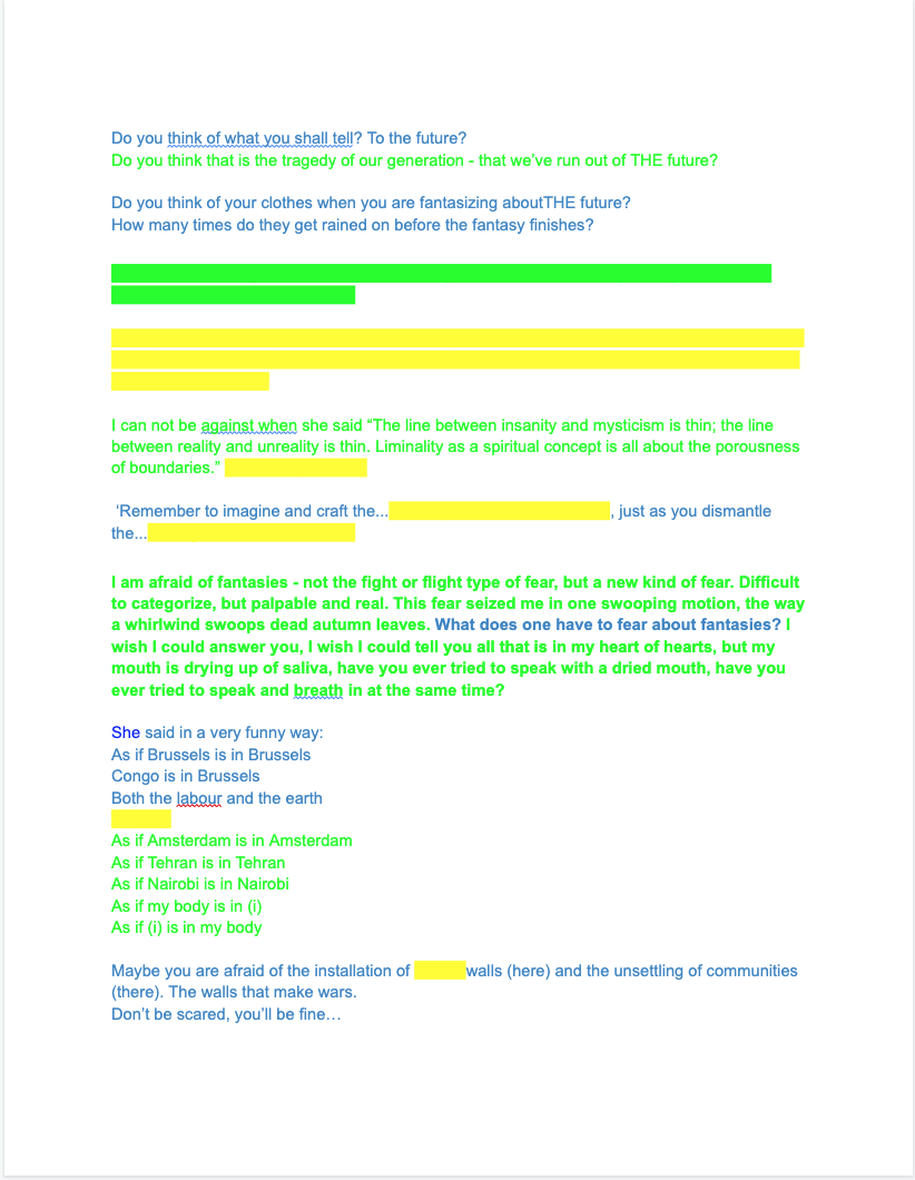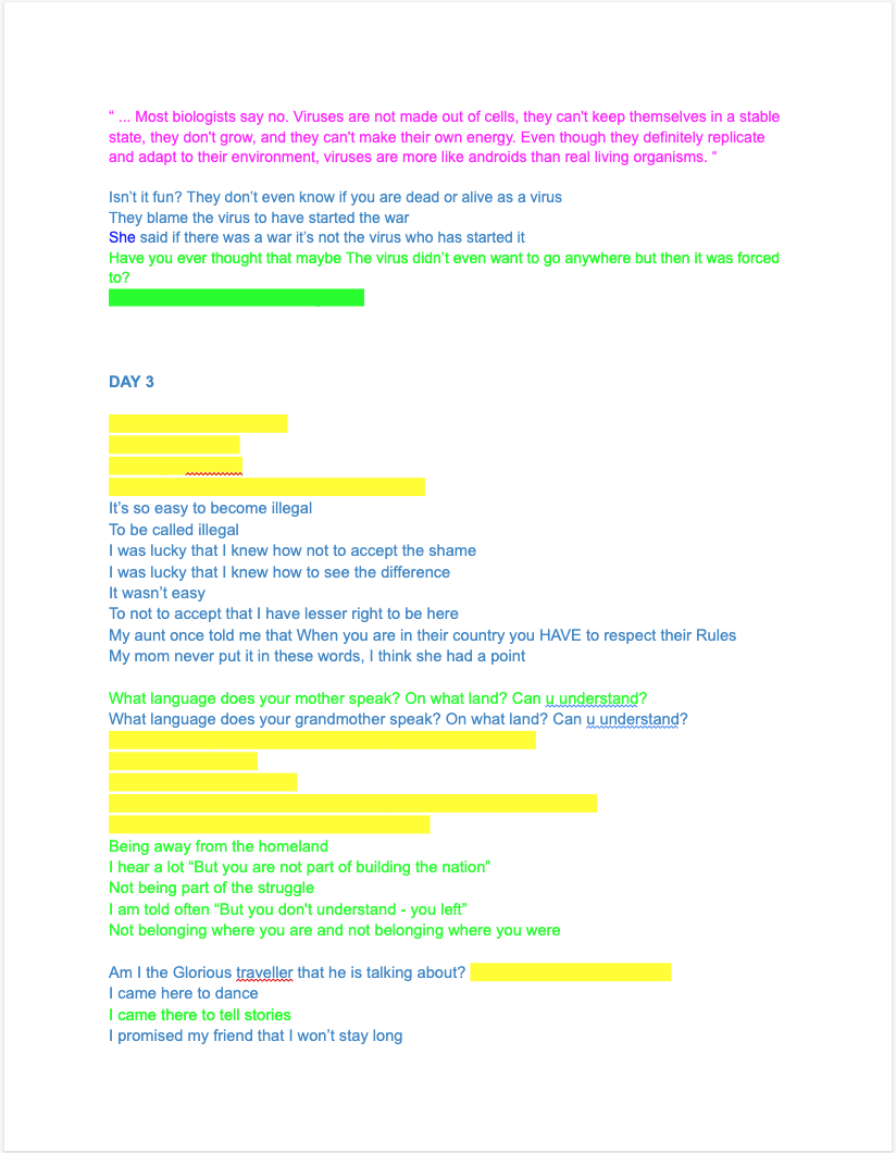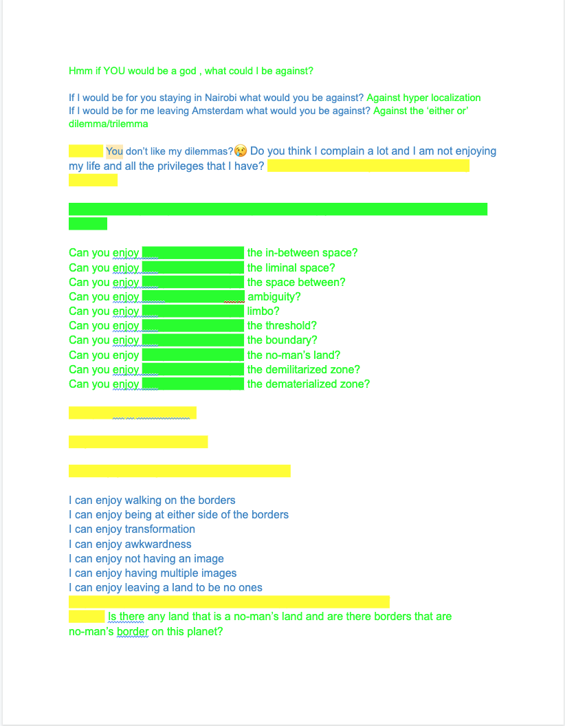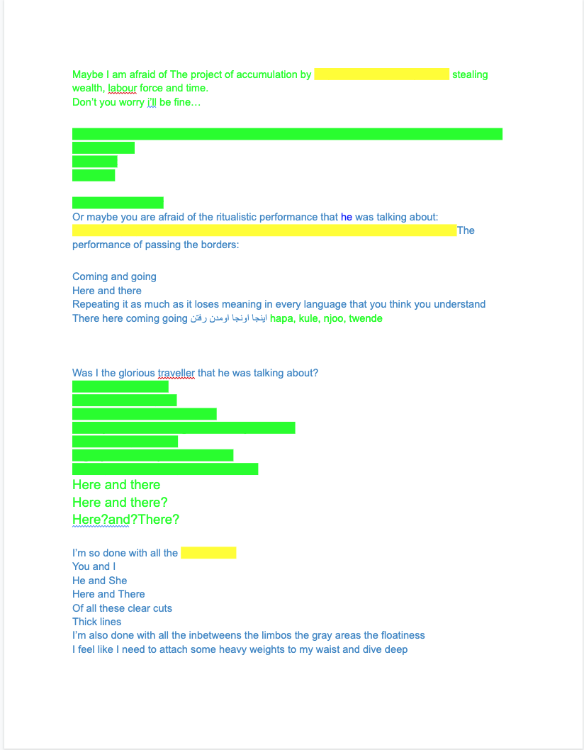 On March 4th 2021, Setareh and Ogutu , from their rooms in Amsterdam and Nairubi, will host a gathering on their screens to share part of the traces of this long term trajectory, asking - where their body is, could be or should be, when its corporeality can not be shared.